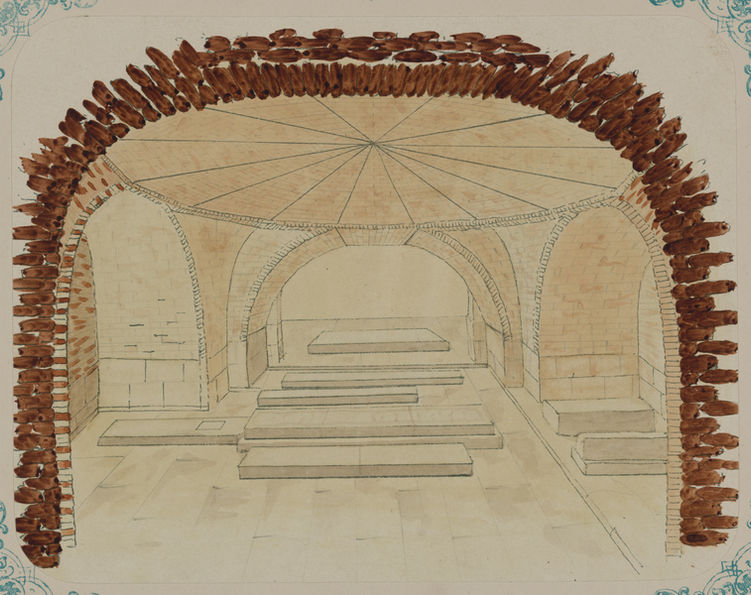 Samarkandskiia drevnosti. Mavzolei Emira Timura-Kuragana, (Gur'-emi [sic]). Vnutrennost' mavzoleia. Vid famil'nago sklepa (dakhme) Tamerlana